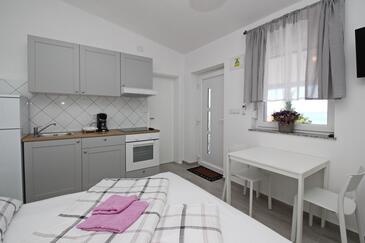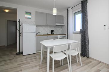 Appartamento può accogliere 6 ospiti. I letti sono disposti nelle camere da letto che sono 2, e nella camera di soggiorno, su 60m2. Gli ospiti hanno a disposizione il proprio terrazzo per godere nelle calde serate estive. Dall'appartamento si gode di una vista sul mare. Nell'unità di alloggio si possono portare gli animali domestici con un pagamento supplementare.