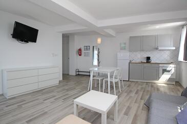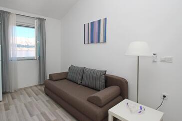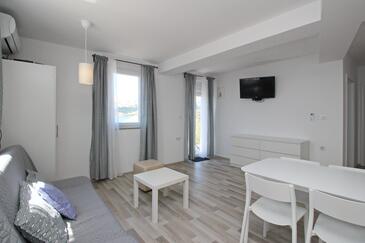 Appartamento può accogliere 6 ospiti. I letti sono disposti nelle camere da letto che sono 2, e nella camera di soggiorno, su 60m2. Gli ospiti hanno a disposizione il proprio terrazzo per godere nelle calde serate estive. Dall'appartamento si gode di una vista sul mare. Nell'unità di alloggio si possono portare gli animali domestici con un pagamento supplementare.