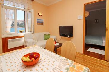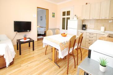 Appartamento può accogliere 4 ospiti. I letti sono disposti nelle camere da letto che sono 2, e nella camera di soggiorno, su 50m2. Gli ospiti hanno a disposizione il proprio balcone per godere delle calde serate estive. Dall'appartamento si gode di una vista sul mare. Nell'unità di alloggio si possono portare gli animali domestici con un pagamento supplementare.