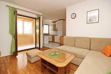 Appartamento può accogliere 4 ospiti. I letti sono disposti nelle camere da letto che sono 2, su 52m2. Gli ospiti hanno a disposizione il proprio terrazzo per godere nelle calde serate estive. Si può preparare il cibo utilizzando il barbecue comune.