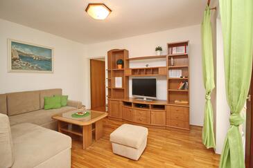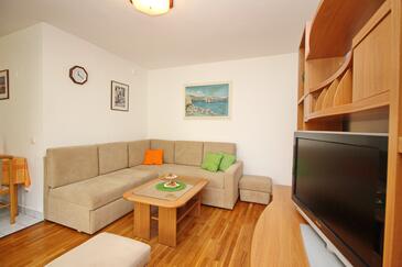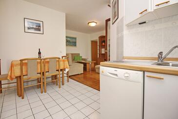 Appartamento può accogliere 4 ospiti. I letti sono disposti nelle camere da letto che sono 2, su 52m2. Gli ospiti hanno a disposizione il proprio terrazzo per godere nelle calde serate estive. Si può preparare il cibo utilizzando il barbecue comune.