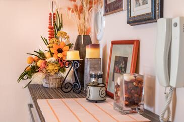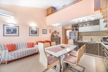 Appartamento può accogliere 6 ospiti. I letti sono disposti nelle camere da letto che sono 3, su 63m2. Gli ospiti hanno a disposizione il proprio balcone per godere delle calde serate estive. Dall'appartamento si gode di una vista sul mare.