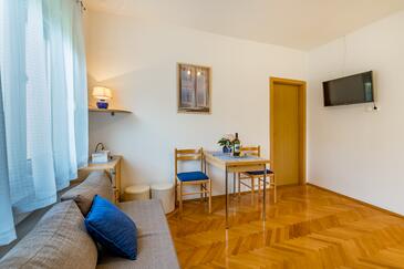Appartamento può accogliere 4 ospiti. I letti sono disposti nelle camere da letto che sono 1, e nella camera di soggiorno, su 32m2. Gli ospiti hanno a disposizione il proprio terrazzo per godere nelle calde serate estive. Si può preparare il cibo utilizzando il barbecue comune. Durante il soggiorno gli ospiti possono utilizzare la piscina comune.