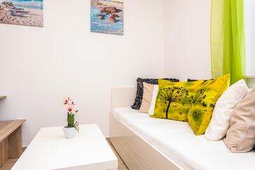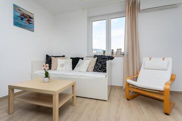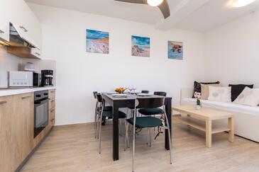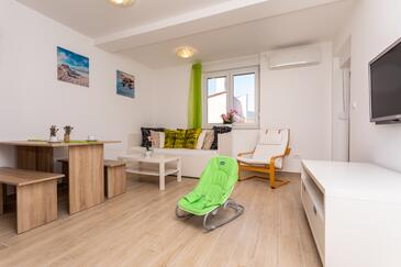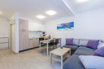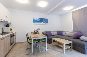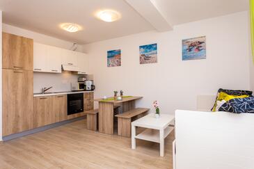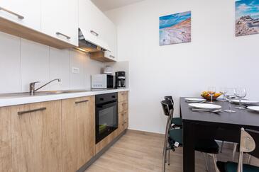 Appartamento può accogliere 6 ospiti. I letti sono disposti nelle camere da letto che sono 2, e nella camera di soggiorno, su 39m2. Gli ospiti hanno a disposizione il proprio terrazzo per godere nelle calde serate estive. Dall'appartamento si gode di una vista sul mare. Nell'unità di alloggio si possono portare gli animali domestici con un pagamento supplementare.