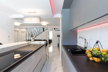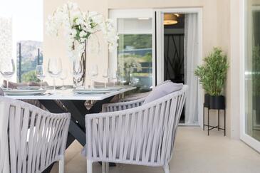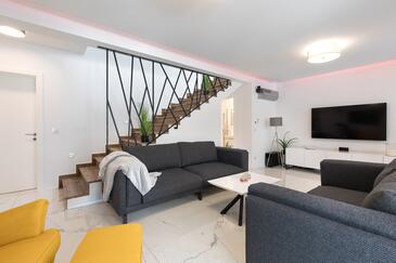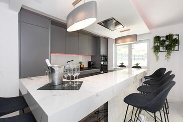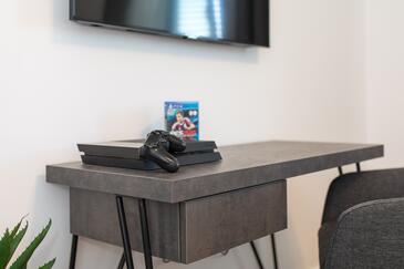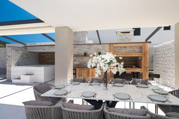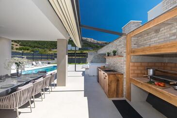 Casa può accogliere 8 ospiti. I letti sono disposti nelle camere da letto che sono 4, su 120m2. Gli ospiti hanno a disposizione il proprio terrazzo per godere nelle calde serate estive. Per il piacere totale e il relax c'è il barbecue privato solo per gli ospiti di quest'alloggio. Durante il soggiorno gli ospiti si possono rilassare nella piscina privata. Arrivati nell'unità d'alloggio i clienti devono pagare un deposito (il prezzo è indicato sul sito).