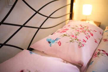 Appartamento può accogliere 5 ospiti. I letti sono disposti nelle camere da letto che sono 2, su 60m2. Gli ospiti hanno a disposizione il proprio balcone per godere delle calde serate estive. Dall'appartamento si gode di una vista sul mare.