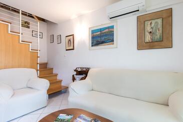 Appartamento può accogliere 5 ospiti. I letti sono disposti nelle camere da letto che sono 2, su 60m2. Gli ospiti hanno a disposizione il proprio balcone per godere delle calde serate estive. Dall'appartamento si gode di una vista sul mare.
