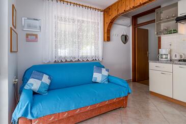 Appartamento può accogliere 3 ospiti. I letti sono disposti nelle camere da letto che sono 1, e nella camera di soggiorno, su 30m2. Gli ospiti hanno a disposizione il proprio terrazzo per godere nelle calde serate estive. Dall'appartamento si gode di una vista sul mare.