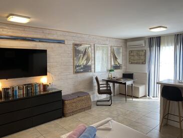 Appartamento può accogliere 4 ospiti. I letti sono disposti nelle camere da letto che sono 1, e nella camera di soggiorno, su 43m2. Gli ospiti hanno a disposizione il proprio balcone per godere delle calde serate estive. Dall'appartamento si gode di una vista sul mare.