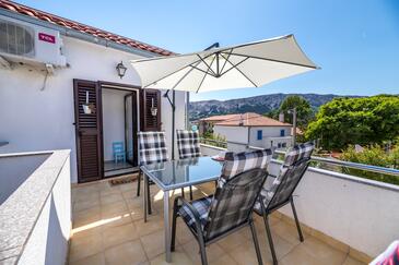 Appartamento può accogliere 4 ospiti. I letti sono disposti nelle camere da letto che sono 2, su 50m2. Gli ospiti hanno a disposizione il proprio terrazzo per godere nelle calde serate estive.