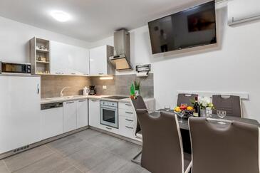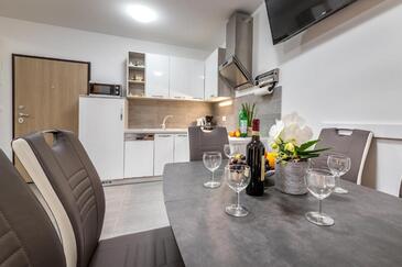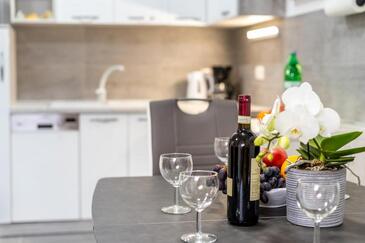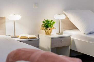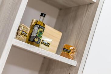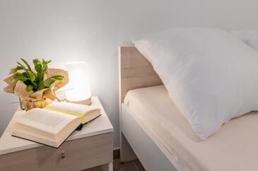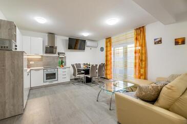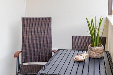 Appartamento può accogliere 5 ospiti. I letti sono disposti nelle camere da letto che sono 2, e nella camera di soggiorno, su 52m2. Gli ospiti hanno a disposizione il proprio balcone per godere delle calde serate estive. Dall'appartamento si gode di una vista sul mare.