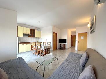 Appartamento può accogliere 5 ospiti. I letti sono disposti nelle camere da letto che sono 2, e nella camera di soggiorno, su 62m2. Gli ospiti hanno a disposizione il proprio terrazzo per godere nelle calde serate estive. Si può preparare il cibo utilizzando il barbecue comune.