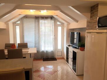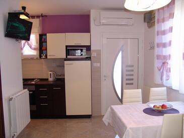 Appartamento può accogliere 5 ospiti. I letti sono disposti nelle camere da letto che sono 2, su 47m2. Gli ospiti hanno a disposizione il proprio terrazzo per godere nelle calde serate estive. Si può preparare il cibo utilizzando il barbecue comune.