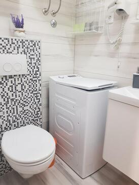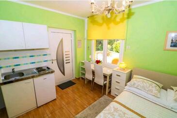 Appartamento può accogliere 5 ospiti. I letti sono disposti nelle camere da letto che sono 2, su 47m2. Gli ospiti hanno a disposizione il proprio terrazzo per godere nelle calde serate estive. Si può preparare il cibo utilizzando il barbecue comune.