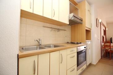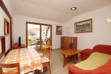 Appartamento può accogliere 6 ospiti. I letti sono disposti nelle camere da letto che sono 3, su 101m2. Gli ospiti hanno a disposizione il proprio terrazzo per godere nelle calde serate estive.