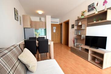 Appartamento può accogliere 4 ospiti. I letti sono disposti nelle camere da letto che sono 2, su 54m2. Gli ospiti hanno a disposizione il proprio balcone per godere delle calde serate estive. Dall'appartamento si gode di una vista sul mare. Si può preparare il cibo utilizzando il barbecue comune. Nell'unità di alloggio si possono portare gli animali domestici con un pagamento supplementare.