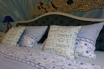 Appartamento può accogliere 6 ospiti. I letti sono disposti nelle camere da letto che sono 2, su 80m2. Gli ospiti hanno a disposizione il proprio terrazzo per godere nelle calde serate estive. Si può preparare il cibo utilizzando il barbecue comune. Nell'unità di alloggio si possono portare gli animali domestici con un pagamento supplementare.