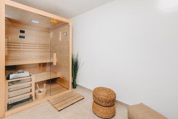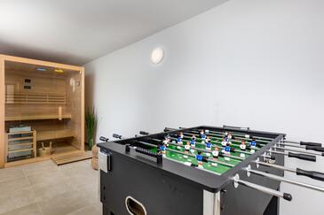 Casa può accogliere 10 ospiti. I letti sono disposti nelle camere da letto che sono 3, e nella camera di soggiorno, su 116m2. Gli ospiti hanno a disposizione il proprio terrazzo per godere nelle calde serate estive. Per il piacere totale e il relax c'è il barbecue privato solo per gli ospiti di quest'alloggio. Durante il soggiorno gli ospiti si possono rilassare nella piscina privata. Nell'unità di alloggio si possono portare gli animali domestici con un pagamento supplementare. Le stanze dell'unità d'alloggio non sono connesse in un insieme. L'unità d'alloggio ha delle stanze separate dal resto dell'unità. Arrivati nell'unità d'alloggio i clienti devono pagare un deposito (il prezzo è indicato sul sito).