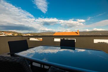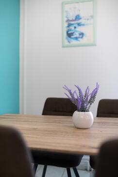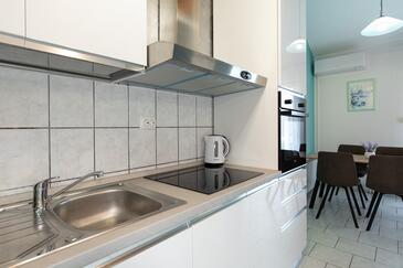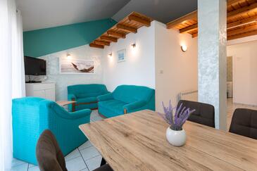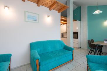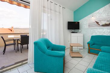 Appartamento può accogliere 4 ospiti. I letti sono disposti nelle camere da letto che sono 2, su 42m2. Gli ospiti hanno a disposizione il proprio terrazzo per godere nelle calde serate estive. Dall'appartamento si gode di una vista sul mare.