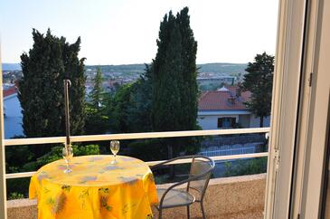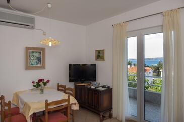 Appartamento può accogliere 5 ospiti. I letti sono disposti nelle camere da letto che sono 2, e nella sala da pranzo, su 57m2. Gli ospiti hanno a disposizione il proprio terrazzo per godere nelle calde serate estive. Dall'appartamento si gode di una vista sul mare. Si può preparare il cibo utilizzando il barbecue comune.