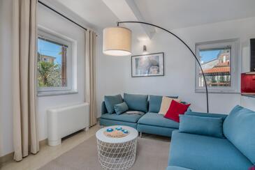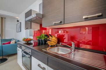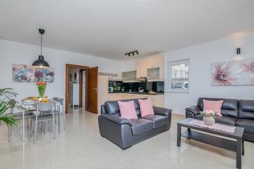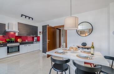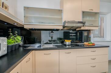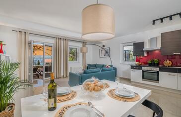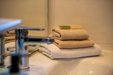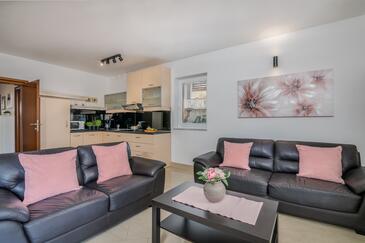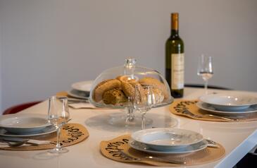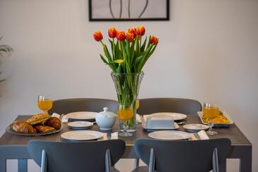 Appartamento può accogliere 5 ospiti. I letti sono disposti nelle camere da letto che sono 2, su 75m2. Gli ospiti hanno a disposizione il proprio terrazzo per godere nelle calde serate estive. Si può preparare il cibo utilizzando il barbecue comune. Arrivati nell'unità d'alloggio i clienti devono pagare un deposito (il prezzo è indicato sul sito).