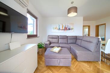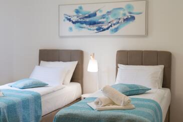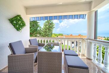 Appartamento può accogliere 4 ospiti. I letti sono disposti nelle camere da letto che sono 2, su 59m2. Gli ospiti hanno a disposizione il proprio terrazzo per godere nelle calde serate estive. Dall'appartamento si gode di una vista sul mare.
