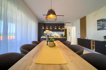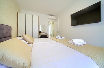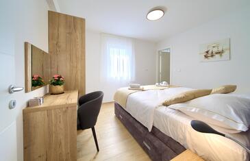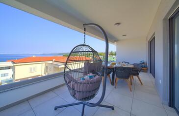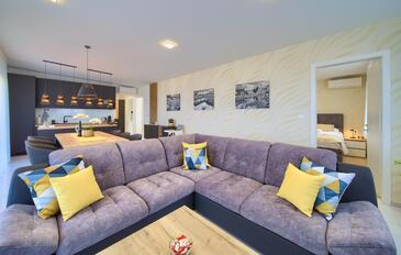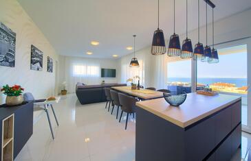 Appartamento può accogliere 6 ospiti. I letti sono disposti nelle camere da letto che sono 3, su 85m2. Gli ospiti hanno a disposizione il proprio terrazzo per godere nelle calde serate estive. Dall'appartamento si gode di una vista sul mare.
