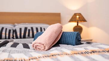 Appartamento può accogliere 4 ospiti. I letti sono disposti nelle camere da letto che sono 2, su 52m2. Gli ospiti hanno a disposizione il proprio terrazzo per godere nelle calde serate estive.