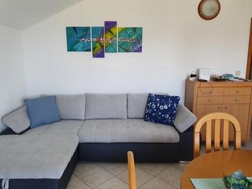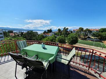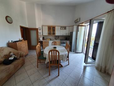 Appartamento può accogliere 5 ospiti. I letti sono disposti nelle camere da letto che sono 2, e nella camera di soggiorno, su 55m2. Gli ospiti hanno a disposizione il proprio terrazzo per godere nelle calde serate estive. Dall'appartamento si gode di una vista sul mare.