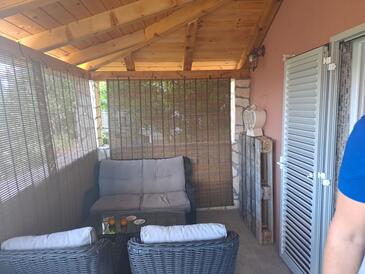 Casa può accogliere 5 ospiti. I letti sono disposti nelle camere da letto che sono 3, su 88m2. Gli ospiti hanno a disposizione il proprio terrazzo per godere nelle calde serate estive. Si può preparare il cibo utilizzando il barbecue comune. Durante il soggiorno gli ospiti possono utilizzare la piscina comune.