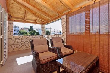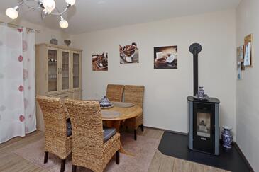 Casa può accogliere 5 ospiti. I letti sono disposti nelle camere da letto che sono 3, su 88m2. Gli ospiti hanno a disposizione il proprio terrazzo per godere nelle calde serate estive. Si può preparare il cibo utilizzando il barbecue comune. Durante il soggiorno gli ospiti possono utilizzare la piscina comune.