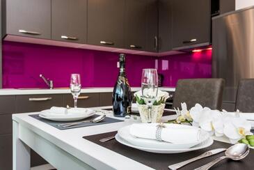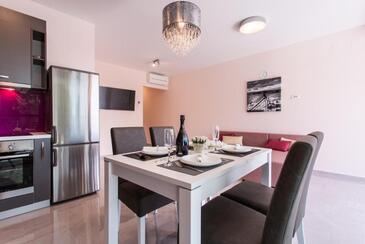 Appartamento può accogliere 4 ospiti. I letti sono disposti nelle camere da letto che sono 2, su 76m2. Gli ospiti hanno a disposizione il proprio terrazzo per godere nelle calde serate estive. Dall'appartamento si gode di una vista sul mare. Le stanze dell'unità d'alloggio non sono connesse in un insieme.
