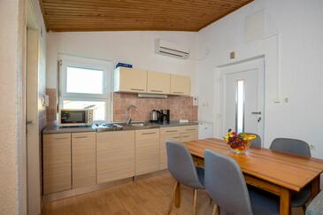 Appartamento può accogliere 5 ospiti. I letti sono disposti nelle camere da letto che sono 2, e nella camera di soggiorno, su 47m2. Gli ospiti hanno a disposizione il proprio terrazzo per godere nelle calde serate estive. Dall'appartamento si gode di una vista sul mare. Si può preparare il cibo utilizzando il barbecue comune. Nell'unità di alloggio si possono portare gli animali domestici con un pagamento supplementare.