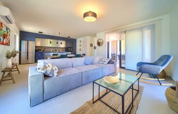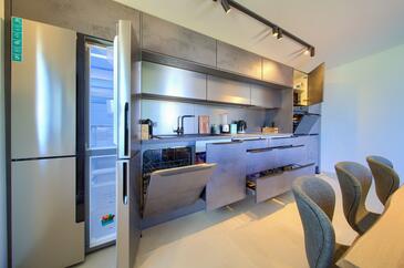 Appartamento può accogliere 4 ospiti. I letti sono disposti nelle camere da letto che sono 2, su 80m2. Gli ospiti hanno a disposizione il proprio terrazzo per godere nelle calde serate estive. Si può preparare il cibo utilizzando il barbecue comune. Nell'unità di alloggio si possono portare gli animali domestici con un pagamento supplementare.