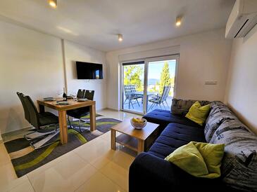 Appartamento può accogliere 4 ospiti. I letti sono disposti nelle camere da letto che sono 2, su 48m2. Gli ospiti hanno a disposizione il proprio terrazzo per godere nelle calde serate estive. Dall'appartamento si gode di una vista sul mare.