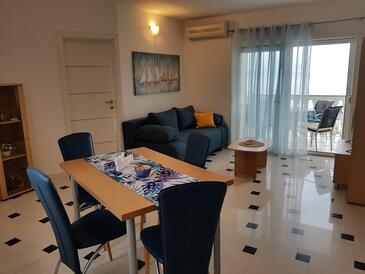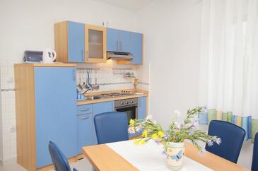 Appartamento può accogliere 4 ospiti. I letti sono disposti nelle camere da letto che sono 2, su 45m2. Gli ospiti hanno a disposizione il proprio terrazzo per godere nelle calde serate estive. Dall'appartamento si gode di una vista sul mare. Si può preparare il cibo utilizzando il barbecue comune.