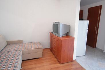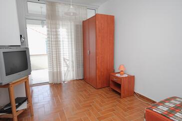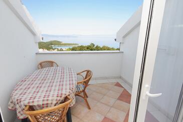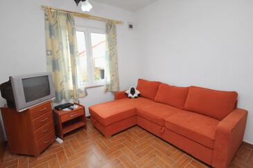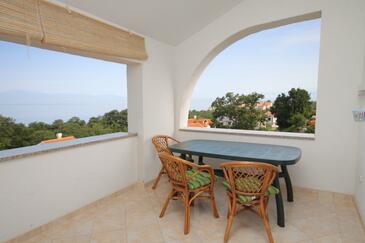Appartamento può accogliere 4 ospiti. I letti sono disposti nelle camere da letto che sono 2, su 46m2. Gli ospiti hanno a disposizione il proprio terrazzo per godere nelle calde serate estive. Dall'appartamento si gode di una vista sul mare. Si può preparare il cibo utilizzando il barbecue comune.