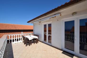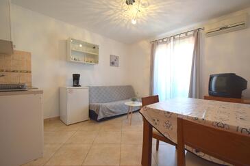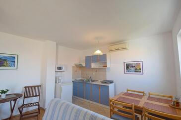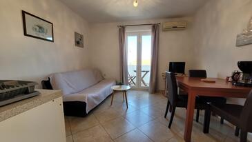 Appartamento può accogliere 4 ospiti. I letti sono disposti nelle camere da letto che sono 2, su 56m2. Gli ospiti hanno a disposizione il proprio terrazzo per godere nelle calde serate estive. Dall'appartamento si gode di una vista sul mare. Si può preparare il cibo utilizzando il barbecue comune. Nell'unità di alloggio si possono portare gli animali domestici con un pagamento supplementare.