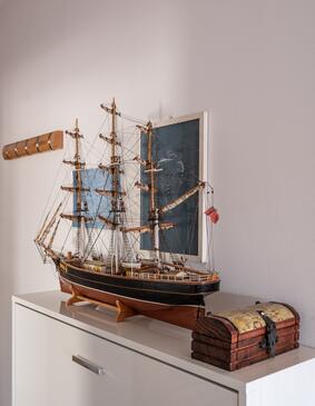 Appartamento può accogliere 6 ospiti. I letti sono disposti nelle camere da letto che sono 2, e nella camera di soggiorno, su 85m2. Gli ospiti hanno a disposizione il proprio terrazzo per godere nelle calde serate estive. Dall'appartamento si gode di una vista sul mare. Arrivati nell'unità d'alloggio i clienti devono pagare un deposito (il prezzo è indicato sul sito).
