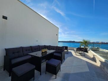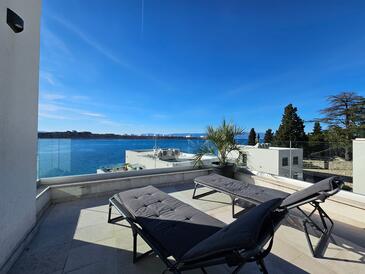 Appartamento può accogliere 4 ospiti. I letti sono disposti nelle camere da letto che sono 2, su 55m2. Gli ospiti hanno a disposizione il proprio terrazzo per godere nelle calde serate estive. Dall'appartamento si gode di una vista sul mare.