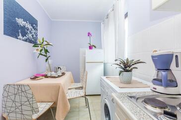 Appartamento può accogliere 4 ospiti. I letti sono disposti nelle camere da letto che sono 2, su 48m2. Gli ospiti hanno a disposizione il proprio balcone per godere delle calde serate estive. Dall'appartamento si gode di una vista sul mare. Durante il soggiorno gli ospiti possono utilizzare la piscina comune.