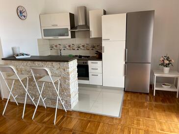 Appartamento può accogliere 4 ospiti. I letti sono disposti nelle camere da letto che sono 2, su 56m2. Gli ospiti hanno a disposizione il proprio terrazzo per godere nelle calde serate estive. Dall'appartamento si gode di una vista sul mare. Si può preparare il cibo utilizzando il barbecue comune.