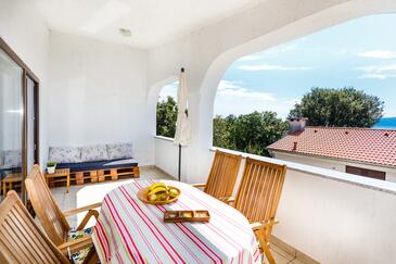 Appartamento può accogliere 4 ospiti. I letti sono disposti nelle camere da letto che sono 2, su 56m2. Gli ospiti hanno a disposizione il proprio terrazzo per godere nelle calde serate estive. Dall'appartamento si gode di una vista sul mare. Si può preparare il cibo utilizzando il barbecue comune.