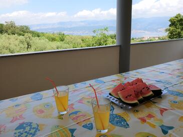 Appartamento può accogliere 6 ospiti. I letti sono disposti nelle camere da letto che sono 3, su 88m2. Gli ospiti hanno a disposizione il proprio terrazzo per godere nelle calde serate estive. Dall'appartamento si gode di una vista sul mare. Si può preparare il cibo utilizzando il barbecue comune. Nell'unità di alloggio si possono portare gli animali domestici con un pagamento supplementare.
