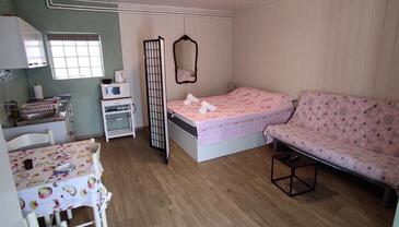 Appartamento può accogliere 5 ospiti. I letti sono disposti nelle camere da letto che sono 2, su 50m2. Gli ospiti hanno a disposizione il proprio balcone per godere delle calde serate estive. Dall'appartamento si gode di una vista sul mare. Si può preparare il cibo utilizzando il barbecue comune. Nell'unità di alloggio si possono portare gli animali domestici con un pagamento supplementare.