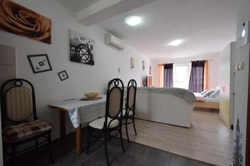Appartamento può accogliere 5 ospiti. I letti sono disposti nelle camere da letto che sono 2, su 62m2. Gli ospiti hanno a disposizione il proprio balcone per godere delle calde serate estive. Si può preparare il cibo utilizzando il barbecue comune.