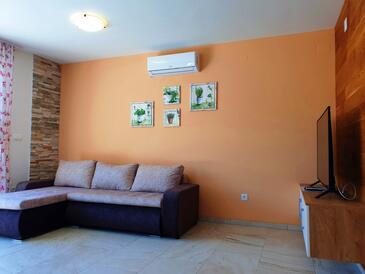 Appartamento può accogliere 4 ospiti. I letti sono disposti nelle camere da letto che sono 2, su 64m2. Gli ospiti hanno a disposizione il proprio terrazzo per godere nelle calde serate estive. Dall'appartamento si gode di una vista sul mare. Si può preparare il cibo utilizzando il barbecue comune.