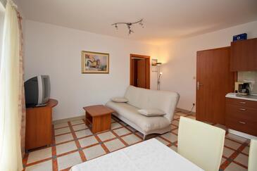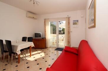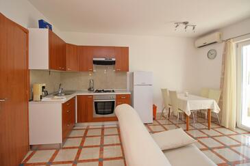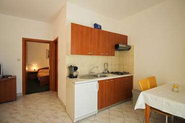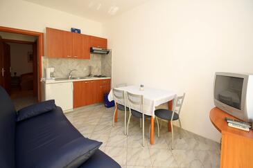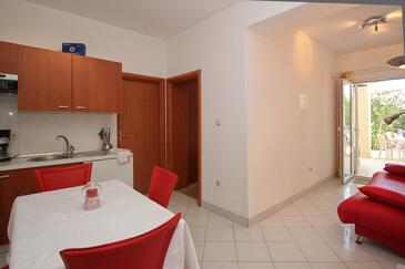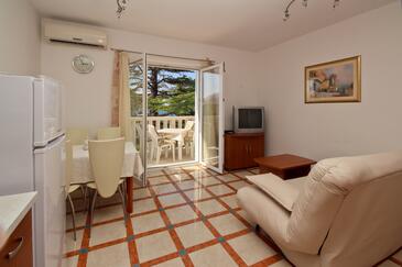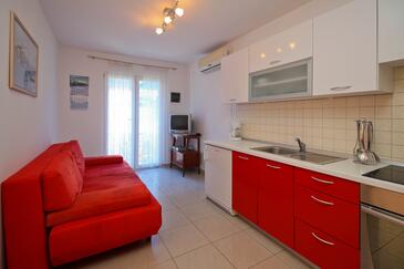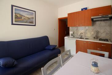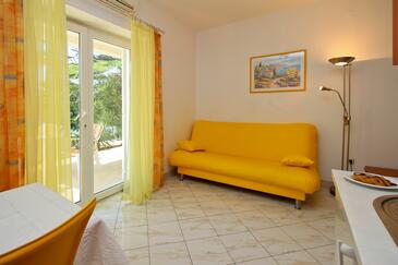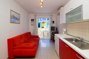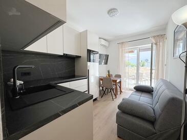 Appartamento può accogliere 4 ospiti. I letti sono disposti nelle camere da letto che sono 1, e nella camera di soggiorno, su 30m2. Gli ospiti hanno a disposizione il proprio terrazzo per godere nelle calde serate estive. Dall'appartamento si gode di una vista sul mare. Si può preparare il cibo utilizzando il barbecue comune.