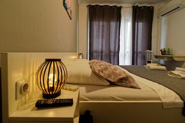 Camera può accogliere 2 ospiti. I letti sono disposti nelle camere da letto che sono 1, su 16m2. Gli ospiti hanno a disposizione il proprio balcone per godere delle calde serate estive. Dalla stanza si gode di una vista sul mare. L'unità di alloggio prenotata è una camera con bagno proprio senza possibilità d'utilizzo della cucina.