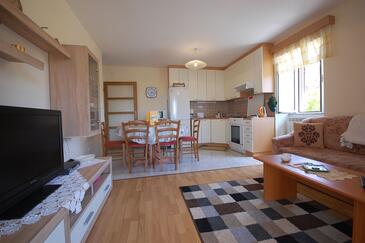 Appartamento può accogliere 6 ospiti. I letti sono disposti nelle camere da letto che sono 2, e nella camera di soggiorno, su 60m2. Gli ospiti hanno a disposizione il proprio terrazzo per godere nelle calde serate estive. Si può preparare il cibo utilizzando il barbecue comune. Durante il soggiorno gli ospiti possono utilizzare la piscina comune.